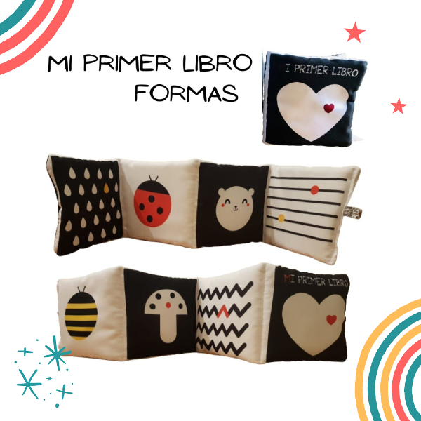 • Librito de tela mullidito, tipo acordeón, para la estimulación visual.